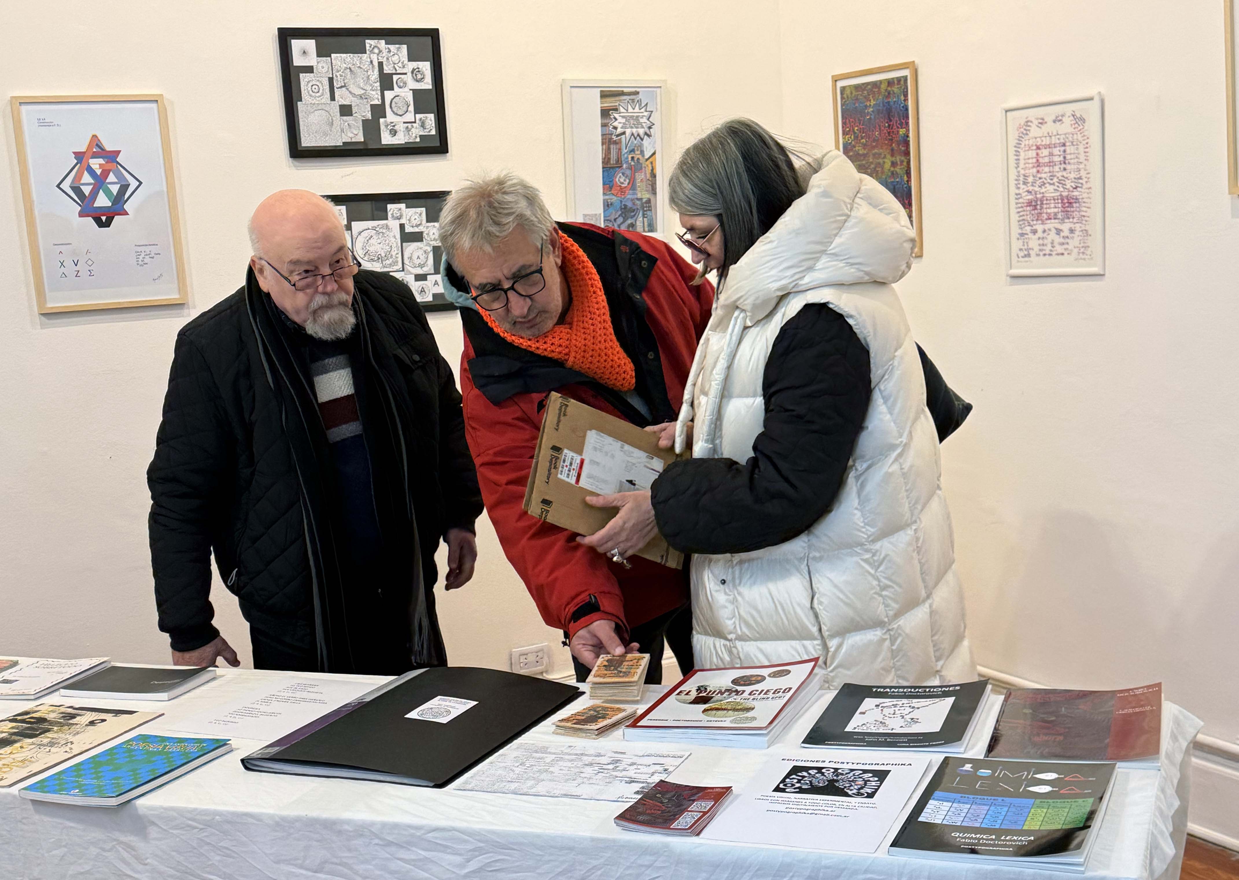 La referencia propuestaArcimboldo Galería de ArteClaudio Mangifesta, Samuel Montalvetti y Ro Barragan en la mesa de edicionesClaudio Mangifesta, Samuel Montalvetti y Ro Barragan en la mesa de ediciones desplegando un libro tipográficoLibros tipográficos desplegables de Ro BarraganHomenaje a Clemente Padin: Paz Pan, obra de Javier RobledoJavier Robledo llevando a cabo su performancemomentos de la inauguraciónLectura de poemas visualesLectura de poemas visualesmomentos de la inauguraciónJavier Robledo, Rosa Gravino, Débora Daich, Diego A. Lazcano, Claudio Mangifesta y Samuel MontalvettiPelusa Borthwick, Javier Robledo y Fabio DoctorovichPerformance de Javier RobledoPerformance de Javier Robledo: entrega a Rosa Gravino el sandwich subastadoPewrformance de Débora DaichObras de Rodolfo Mata (arriba) y Juan Ángel. ItalianoPalo de ama(s)ar poesía, de Diego LazcanoObras de Débora Daich (centro) Tabla Periódica y Libro Química del Ou-Li-Po Obras de Javier Robledo En las paredes obras de Rosa Gravino, Fabio Doctorovich, Diego A. Lazcano , Ingrid Roddick y Ro Barragan; al pie la mesa de ediciones de autorObras de Ingrid Roddick (izq.) y Diego A. Lazcano Obras de Diego A. Lazcano (izq.) Ingrid Roddick (centro) y Ro Barragan (der.) Obras en carpeta Fabio DoctorovichObras en carpeta Rosa GravinoObras en carpeta Rosa GravinoObras en carpetaObras en carpetaObras en carpetaObras en carpetaObras en carpeta Claudio MangifestaObras en carpeta Diego LazcanoObras en carpeta Diego Lazcano